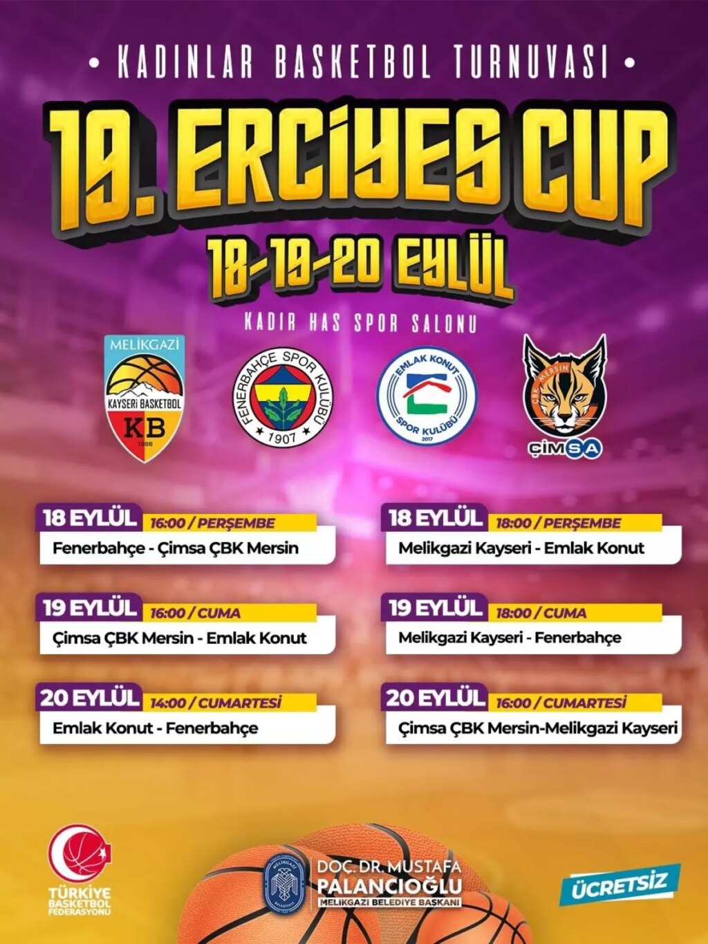 MELİKGAZİ Kayseri Basketbol mesken sahipliğinde bu sene 19’uncu defa düzenlenecek hazırlık turnuvası Erciyes Cup’ın maç programı muhakkak oldu.