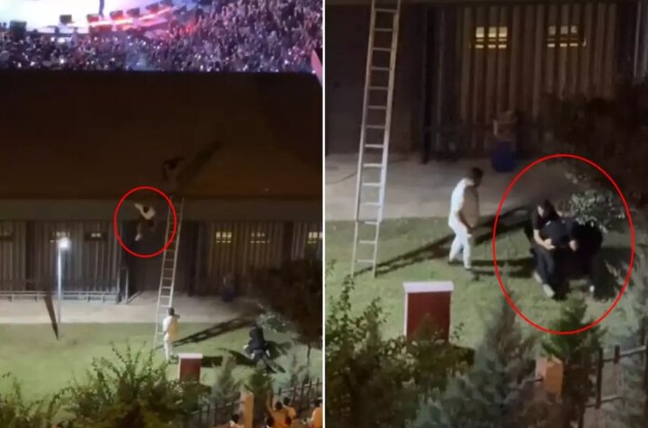 Mersin'de fiyatlı düzenlenen bir konseri binanın çatısına çıkarak izlemeye çalışan gençlere özel güvenlik vazifelileri...